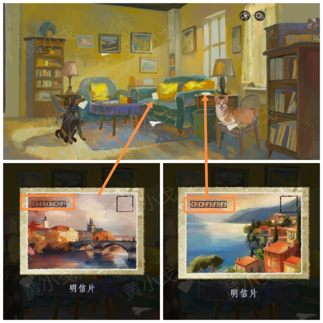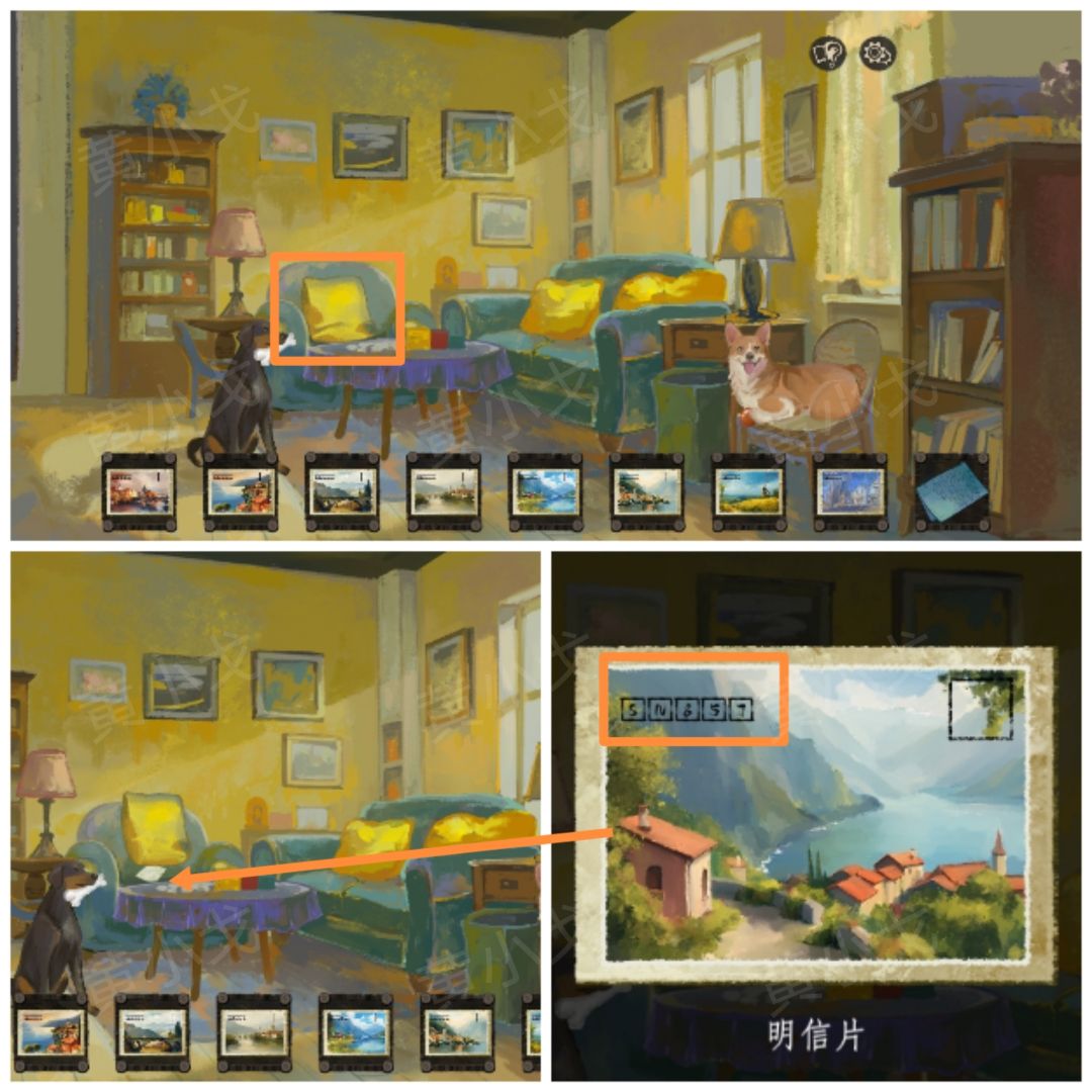 13.拿开单座沙发上的抱枕,获得【明信片】
