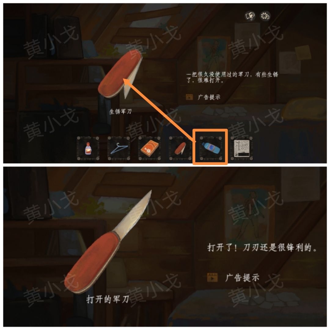 36.用【凡士林】润滑【生锈军刀】,获得【打开的军刀】