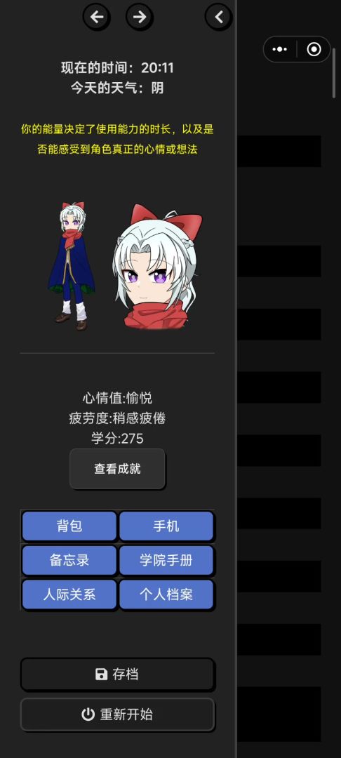 4.图3图4是能力课除第一次溜去找语绘和闻常秋以外,会无法显示内容,不知道是还没写还是什么;