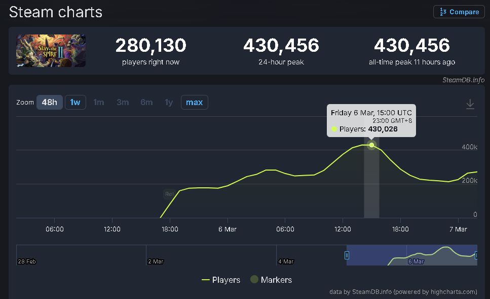 像这样吹别的游戏,葡萄君包被人骂的,但吹《杀戮尖塔》大概率不会。毕竟《塔2》可是一上线,就立马把Steam给搞崩了半个小时的游戏。上一次出现这种情况,还是《丝之歌》发售那阵。