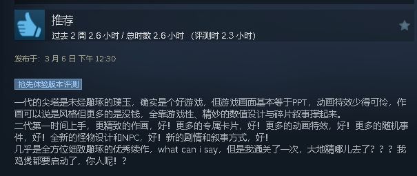 如果你翻翻评论区,会发现……呃,大部分内容是第一时间赶来讲“鸡煲笑话”的老玩家。也能理解,毕竟周五白天大多数人还没空玩,但冲着1代的质量,先来打个好评肯定没问题。