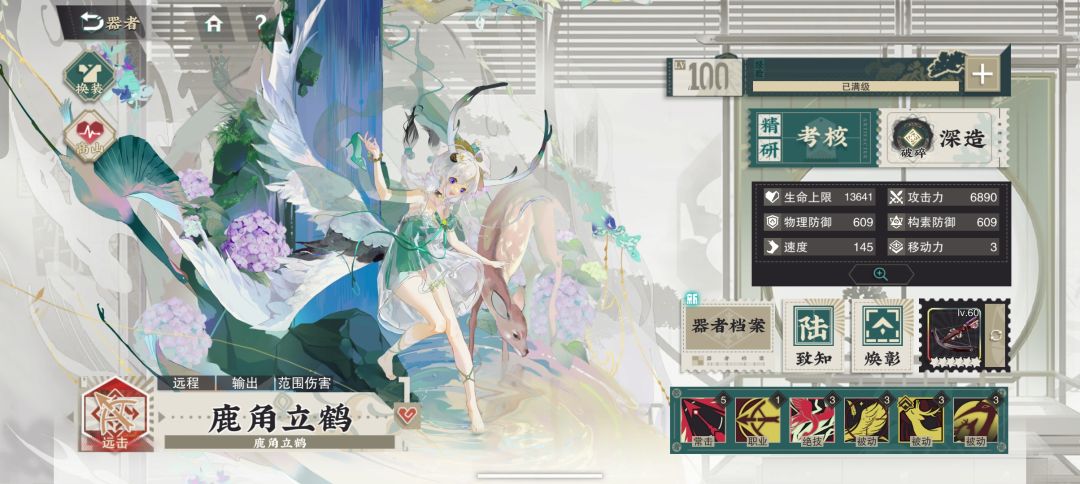 ①攻击敌方后(或绝技攻击前)使敌方获得「嘹唳亭风」:回合结束时50概率触发,受到鹿角立鹤一定比例额外物理伤害,并「止戈」一回合