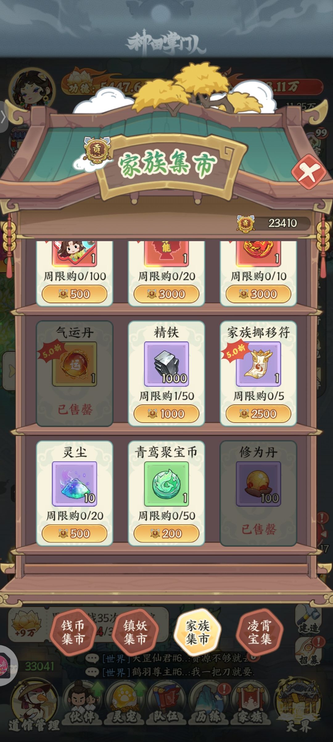 镇妖买终身限购,家族买修为和气运丹
