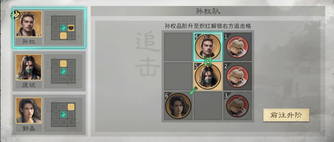 英雄站位:郭嘉不站追击格,庞统站郭嘉的追击格,并与孙权互站追击格。