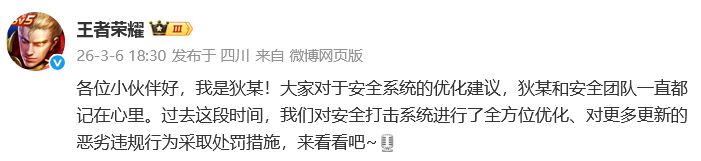 原因和王者荣耀的安全系统升级有关,在新技术AI的加持下,不仅可以局内实时监测恶意行为还可以实时做出反应,此外还搞了二次审判精细复核