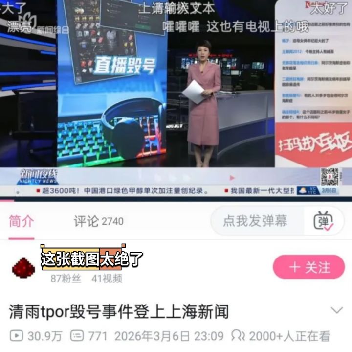 一位叫“清雨Tpor”的主播,因为他的粉丝扫码上号没注意自己舰长过期了十来秒,人主播就在直播间当着大伙的面,把人家玩了一年的账号仓库给清空了,据说损失游戏币价值上亿。结果呢?这事闹大了,主播除了被处罚外,最新情况是后续还直接登上了上海的《新闻夜线》节目。