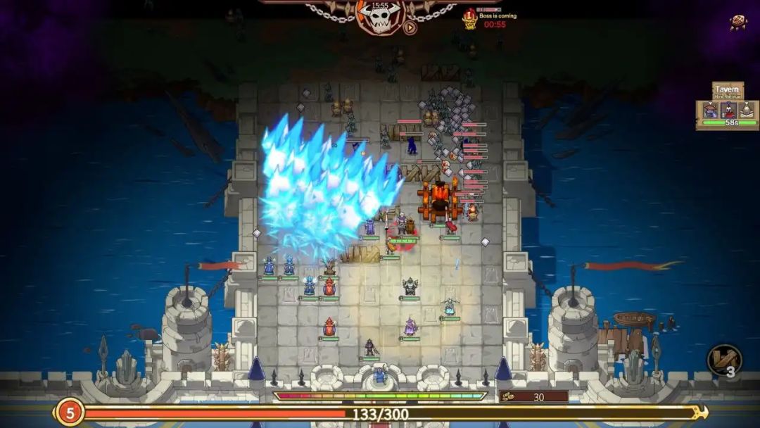 随着一波波怪物袭来,终将迎来精锐变体和独特的Boss携带的强力联合大军,挑战并战胜它们,获得强力遗物增强战力,游戏局外则有技能树可进行加点增强我方实力