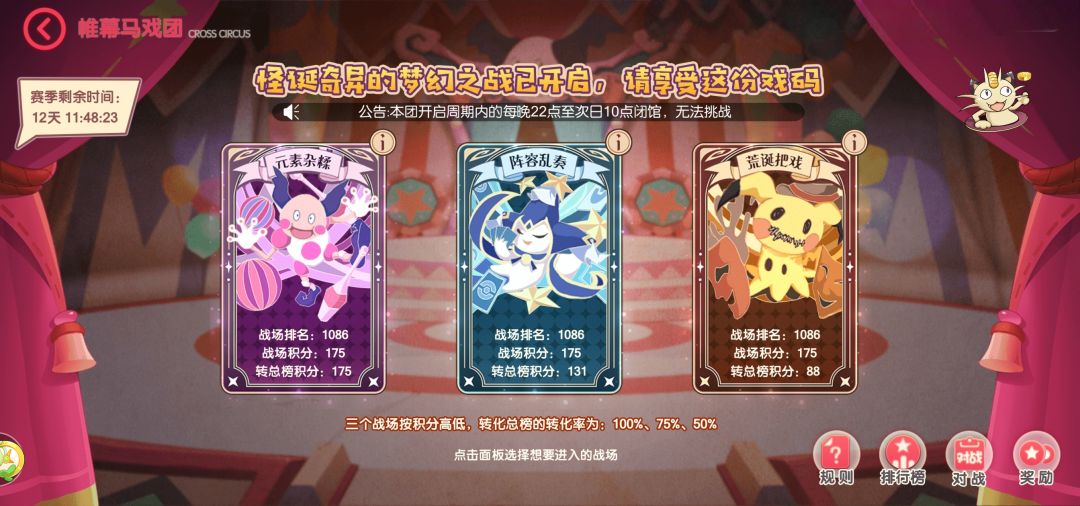 帷幕马戏团:策略挑战玩法限时开启,考验你的阵容搭配与战术思维。