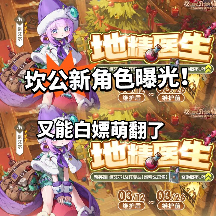 大的来了家人们!近日 坎公骑冠剑新英雄地精医生诺艾尔的UP池正式官宣了,社区直接炸了!