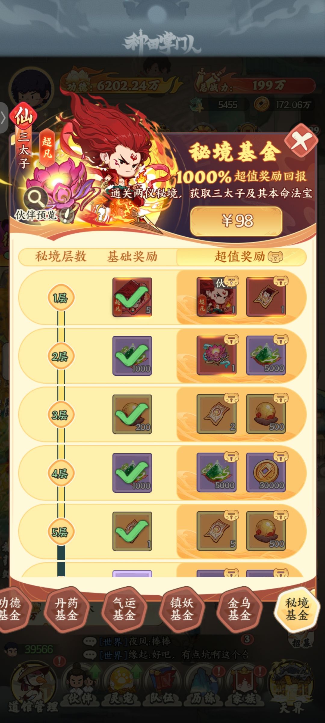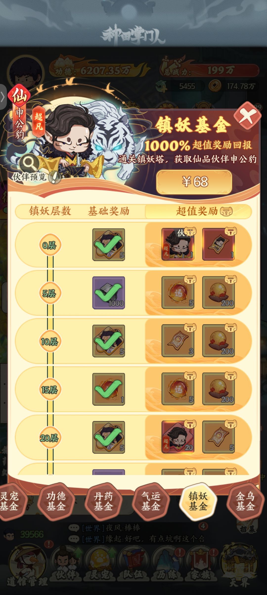 ⭐️合计:[68+198=266]这两个是能长期获利,并且有加成,而且这两个相辅相成,都和功德与锁妖塔挂钩。有条件可以开个小卡。