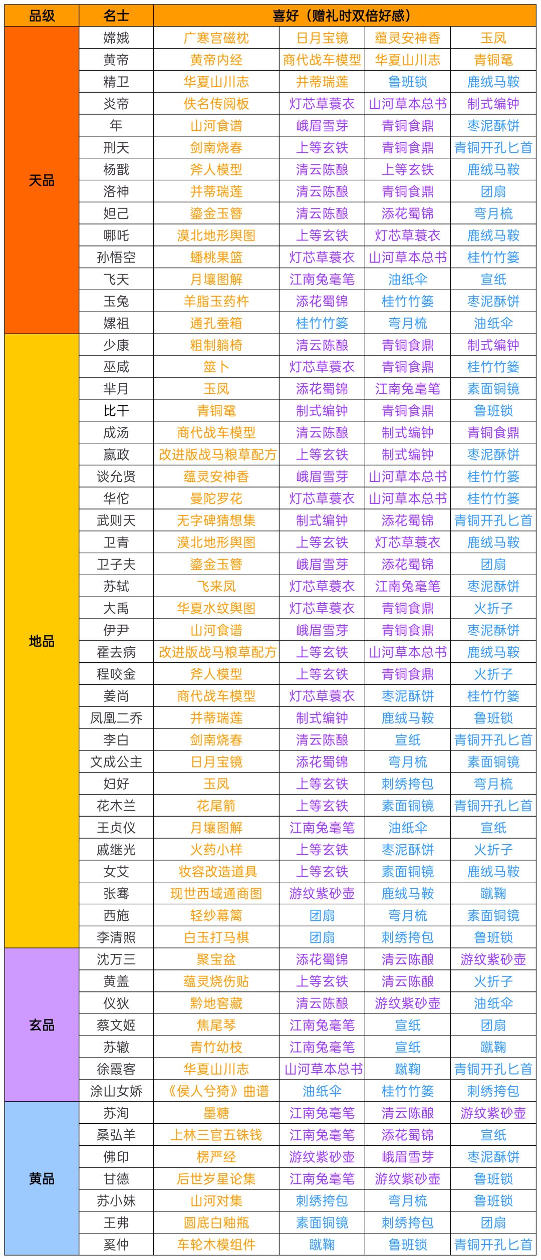 名士巫咸技能专武及礼物喜好