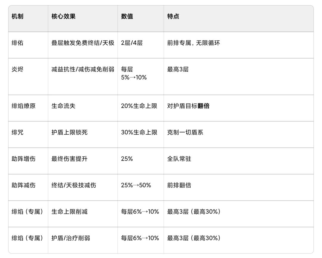 - 克制肉盾流:绯焰永久削生命上限、防御