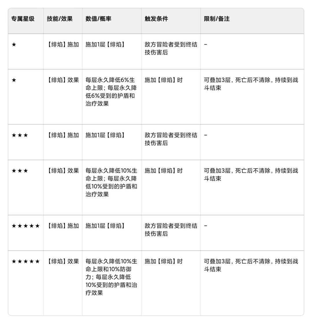 - 专属技叠 绯焰(永久削血上限、防御、治疗)