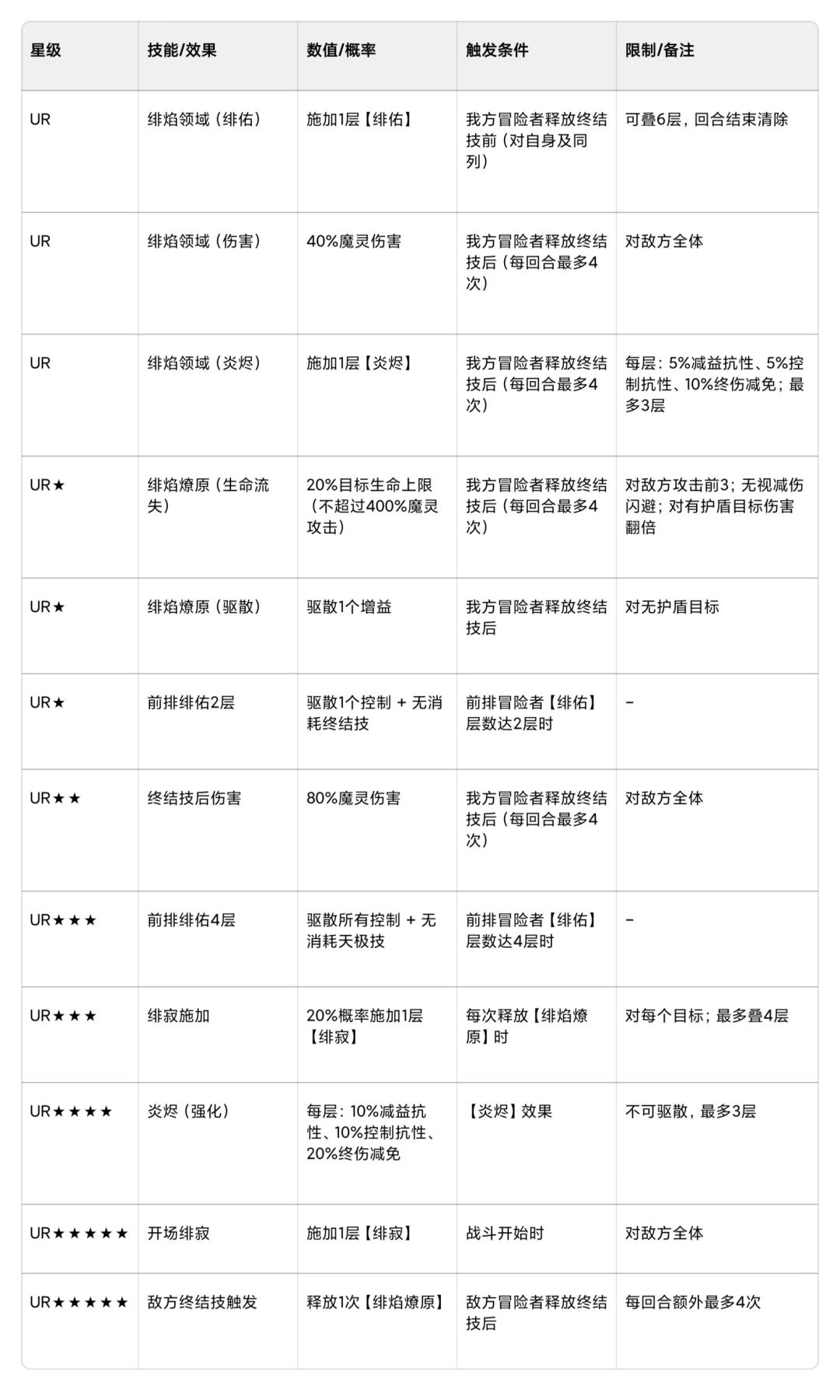 终结技命中就叠,死亡不清、不可驱散、全程掉属性。