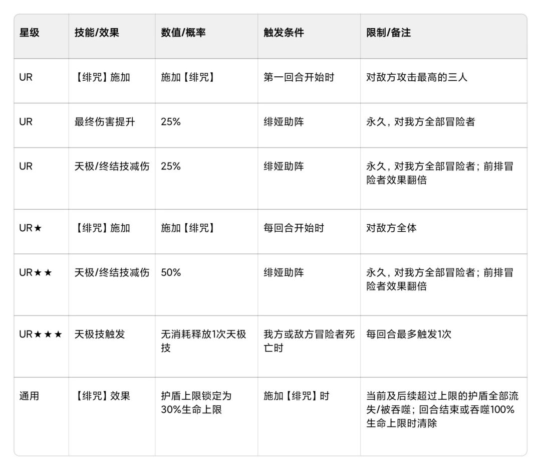 - 绯咒:锁死敌方护盾上限 30%