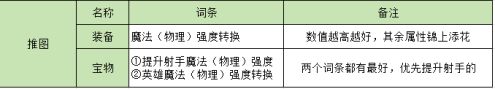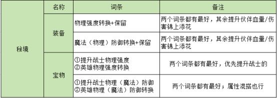 ②除了上文提到的属性选择,其余属性有高数值的也可以留,属于战未来。宝物:提升肉盾的魔强/物强/魔防/物防/血量,提升战士的魔强/血量等等。(提升射手防御/血量这种幽默属性就算了)。装备:血量转换。