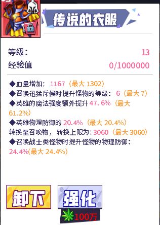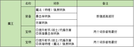 打魔王需要注意的有点多,各个方面的养成会影响,所以装备和宝物的选择不是固定死的。思路是基础强度(主力的白色家族面板双强>2500),然后高暴击(前期80%,中期80-95%,后期100%),剩下全堆伤害。魔王的装备/宝物搭配以英雄250级左右为分水岭。