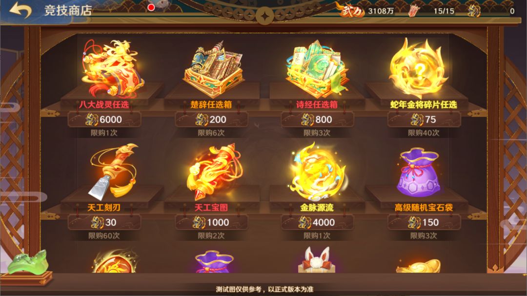 3、竞技商店内更新,可兑换八大战灵任选、蛇年金将碎片任选、金脉源流。