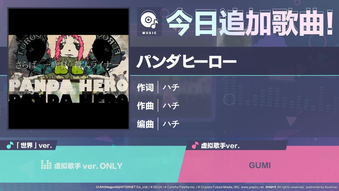 3/10 15:00起,追加歌曲《パンダヒーロー》!