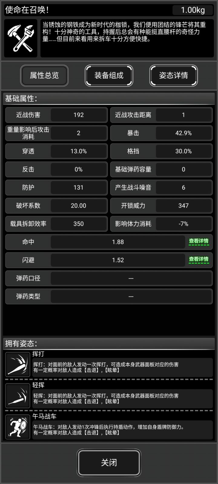 活下去 武器数值对比