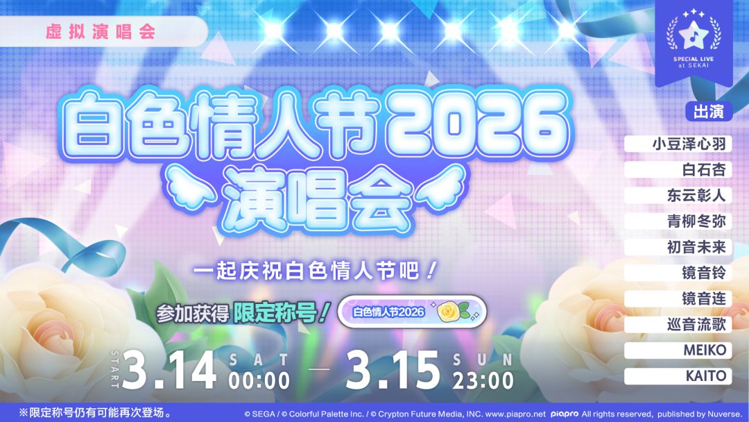我们将于3/14(六)和3/15(日)举办「白色情人节演唱会 2026」。