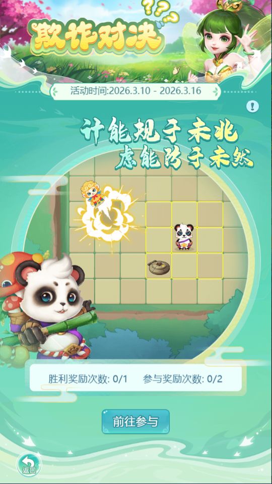 2.活动场地为8*10的格子,游戏开始后玩家可以操控卡通角色在格子上行走。