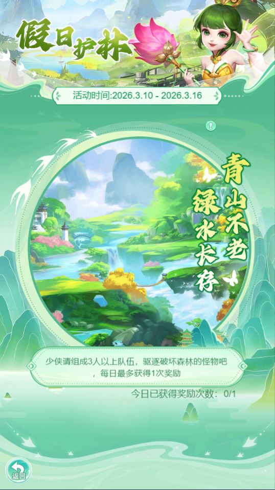 2.少主需组成3人以上队伍,击退斩柴妖保护森林;