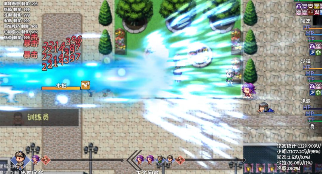 普通木桩1400w(穿甲依旧有效,应该不是0抗性),气功单动1100w,黑骑追击320w