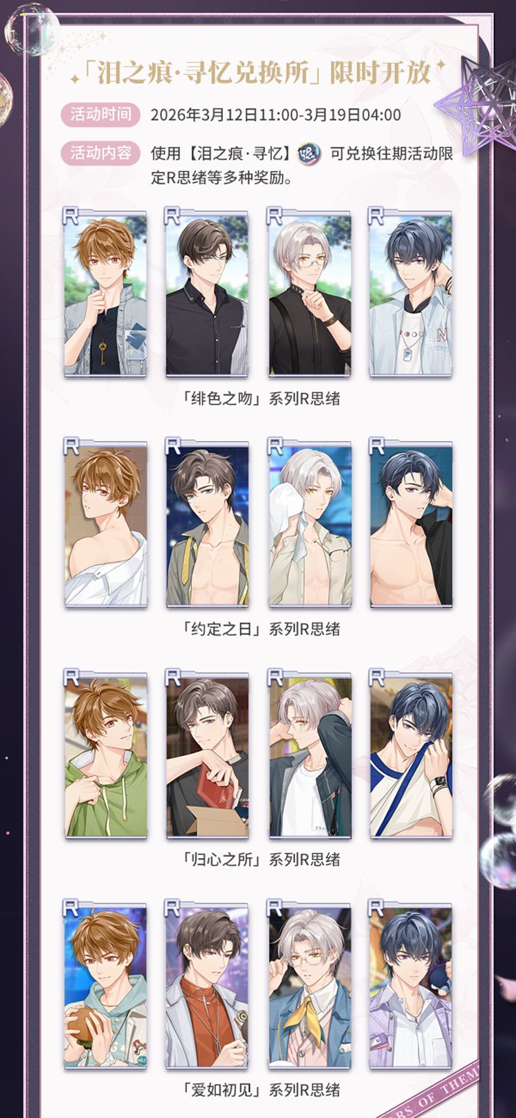活动期间,使用【泪之痕·寻忆】可兑换往期活动限定R思绪等多种奖励