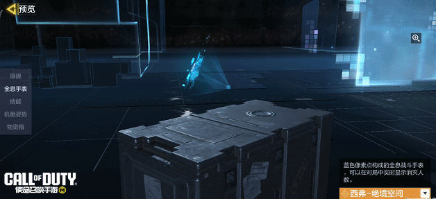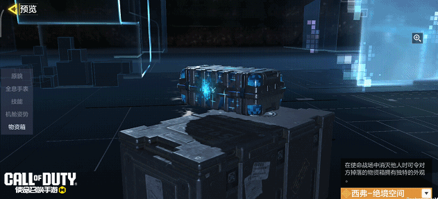 在使命战场被西弗-绝境空间消灭的敌人,装备上会留下其专属标记。黑色的物资箱闪烁着蓝光,并投影出由数据链构成的全息标志。