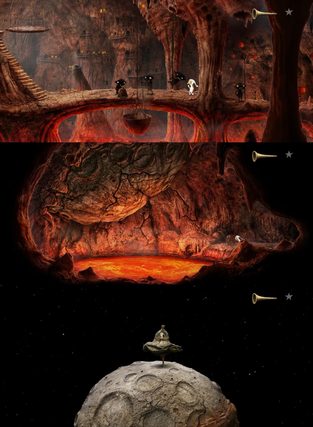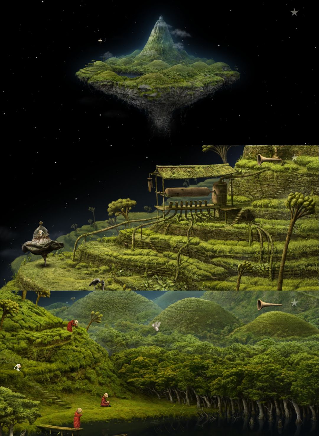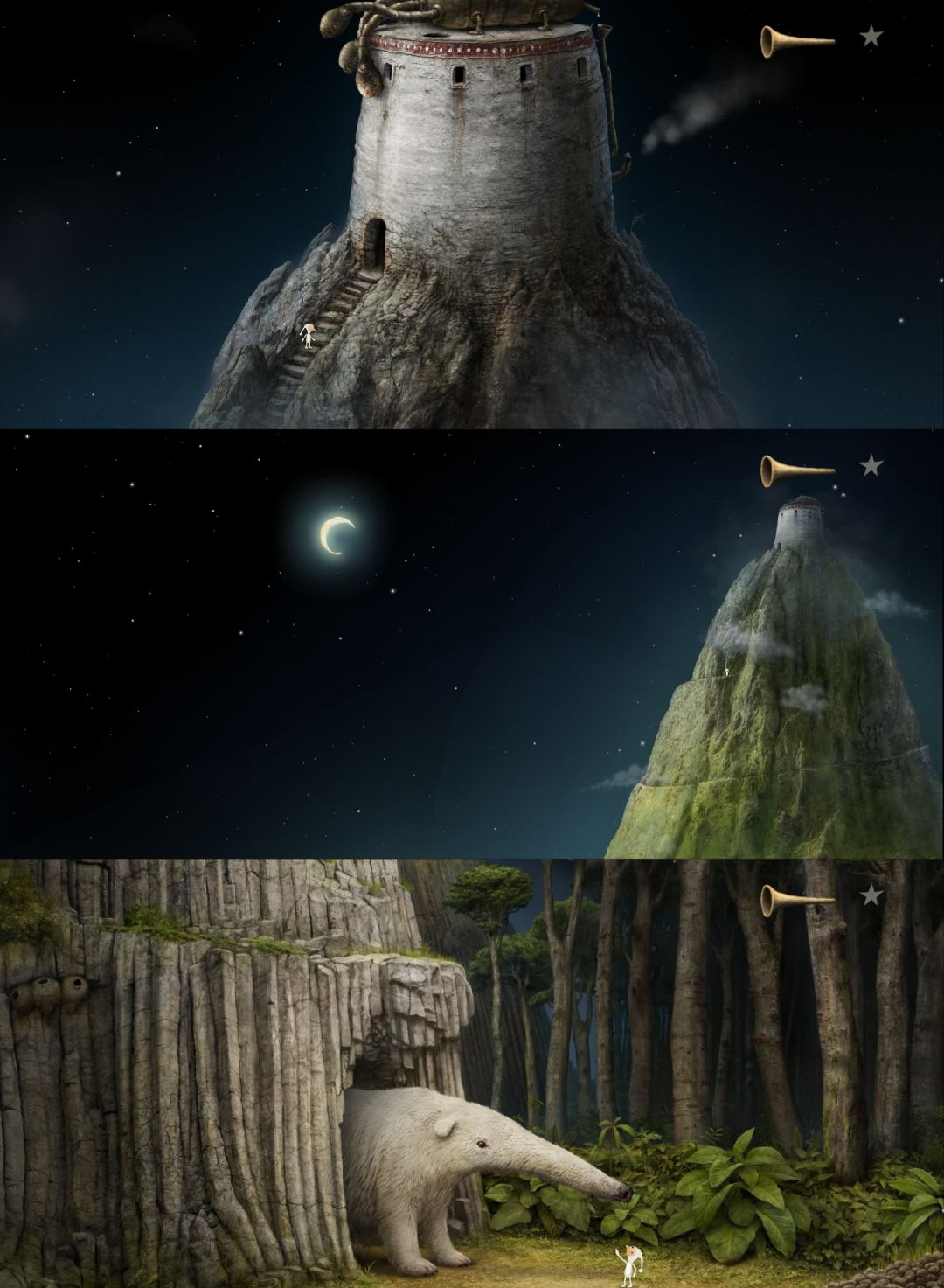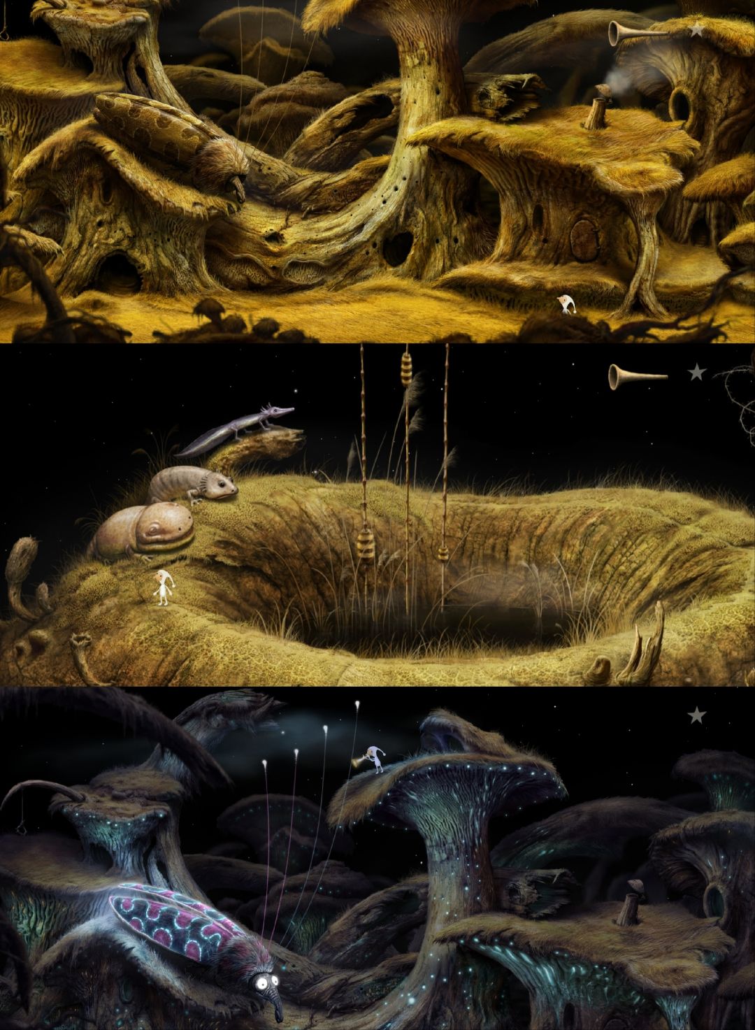 这是《银河历险记》系列(Samorost)目前为止最后一部,发行于2016年,至今已有10年。从2009年的第二部到2016年的第三部,7年时间,Amanita Design给全球粉丝交出了一份完美的答卷。站在第三部的角度看第一部、第二部,前作只是小打小闹,续作才更配得上“银河历险记”的名号。第三部有了更完善的剧情、更丰富的场景、更多样的角色、更动听的音乐、更难的谜题……绝对是巅峰之作。