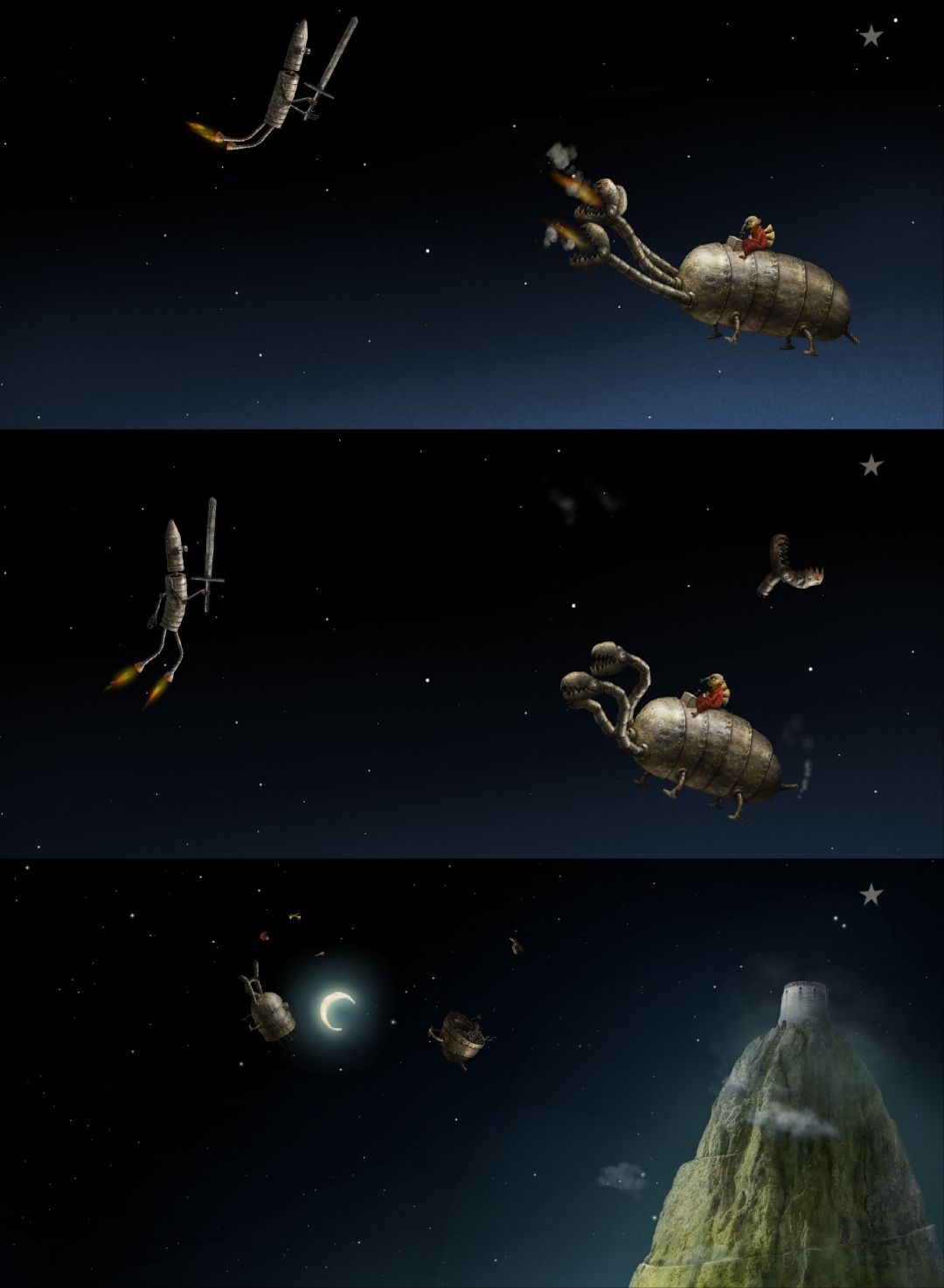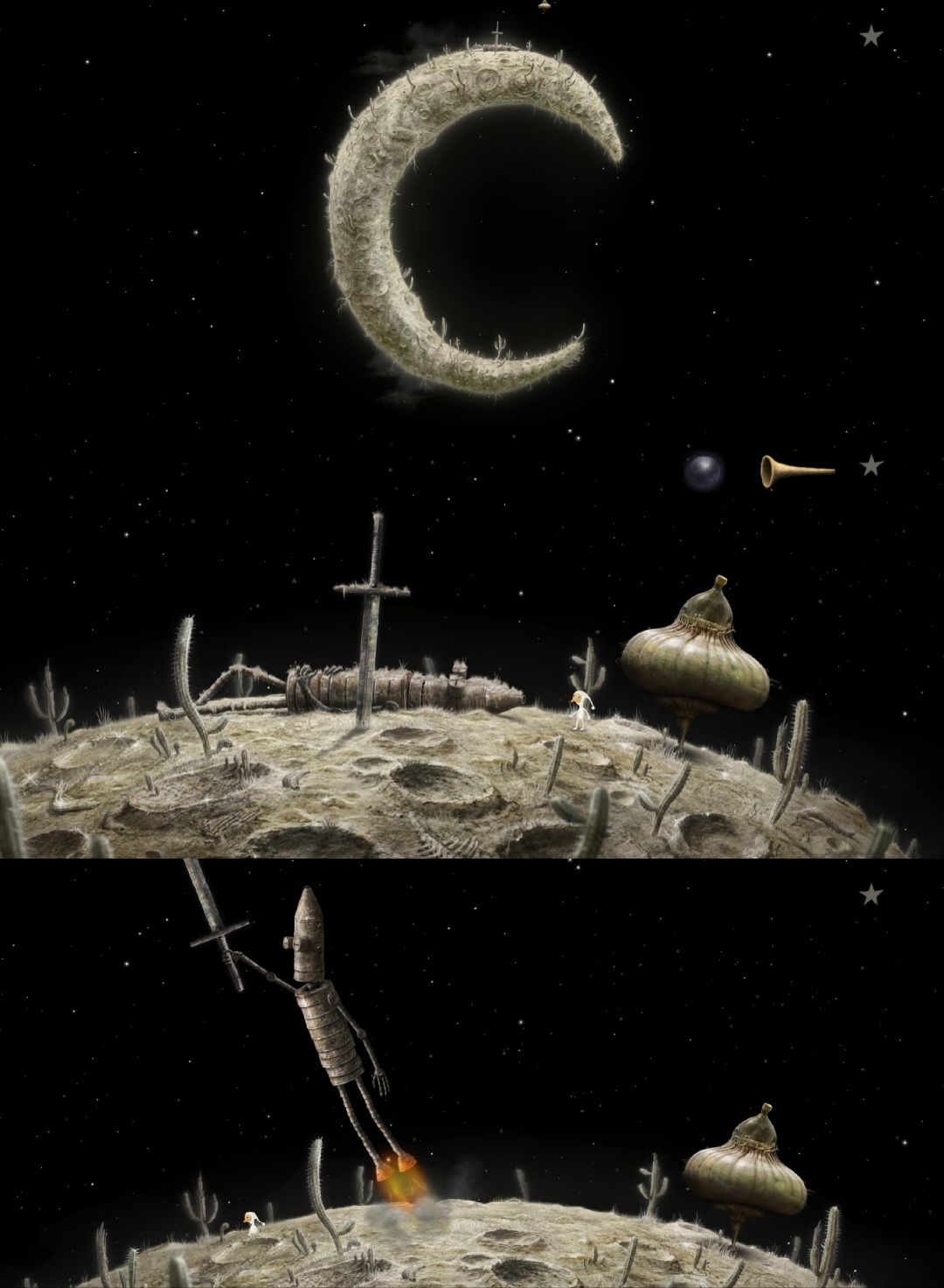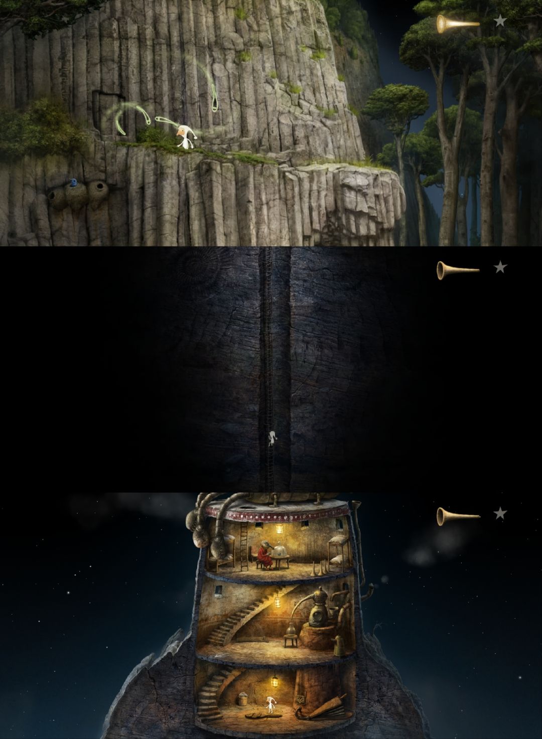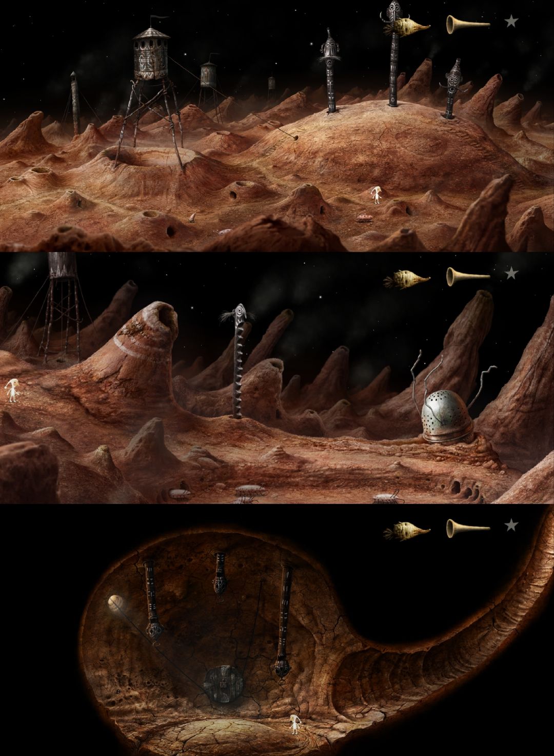 这是《银河历险记》系列(Samorost)目前为止最后一部,发行于2016年,至今已有10年。从2009年的第二部到2016年的第三部,7年时间,Amanita Design给全球粉丝交出了一份完美的答卷。站在第三部的角度看第一部、第二部,前作只是小打小闹,续作才更配得上“银河历险记”的名号。第三部有了更完善的剧情、更丰富的场景、更多样的角色、更动听的音乐、更难的谜题……绝对是巅峰之作。