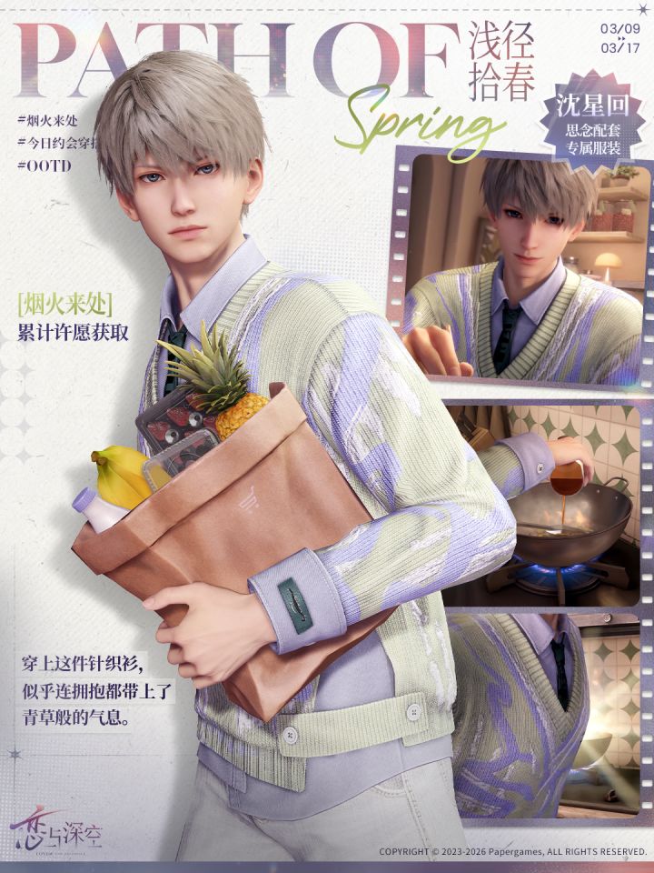 ,玩家可以在该卡池中获取限定五星思念「沈星回·烟火来处」