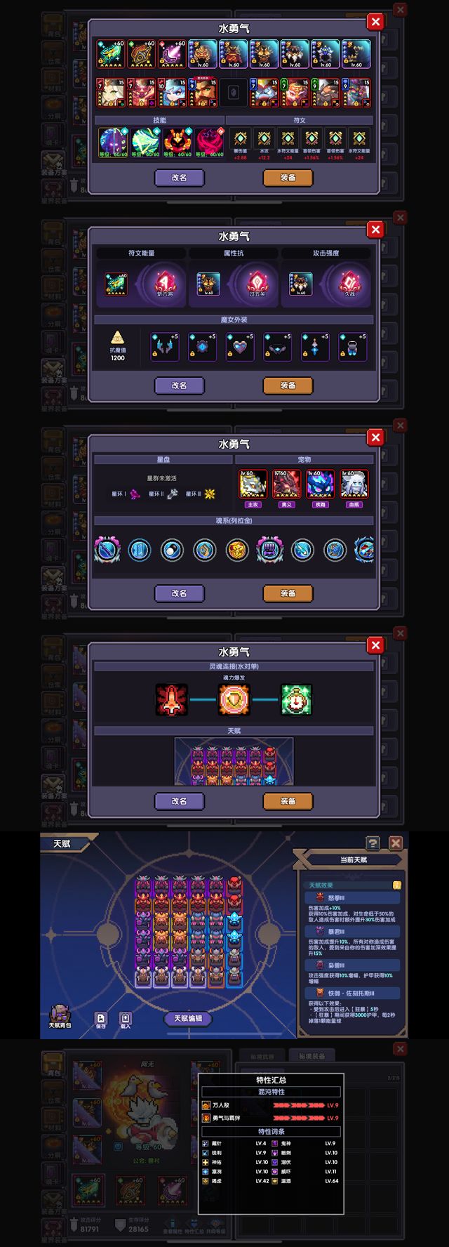 所以大家做勇气套的时候,可以把凛冽(战士收益较低)、潜伏、神佑、这几个基本没用或不吃等级的特性就打在勇气套上。这样对群用回刺壳的时候,职业套特性就不用来回洗。