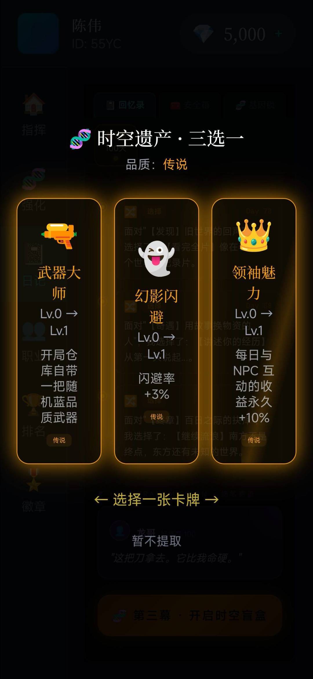 永久养成 — 重生日记系统上线,包含属性继承+永久buff+局外小仓库,还能回忆上一局的关键剧情节点,死了也不白忙活,一把更比一把强!