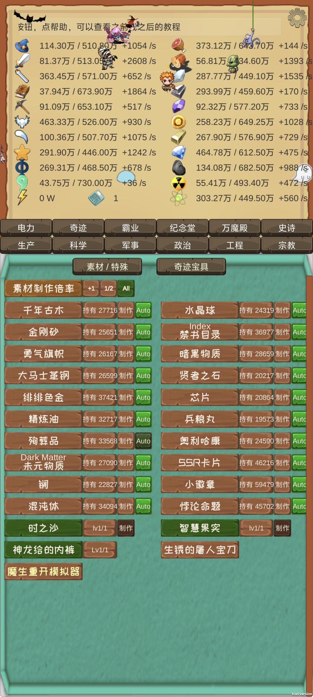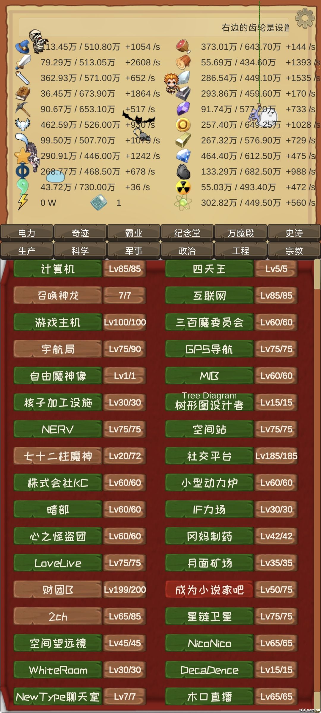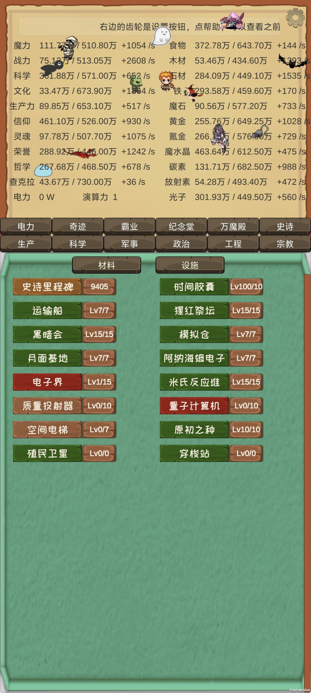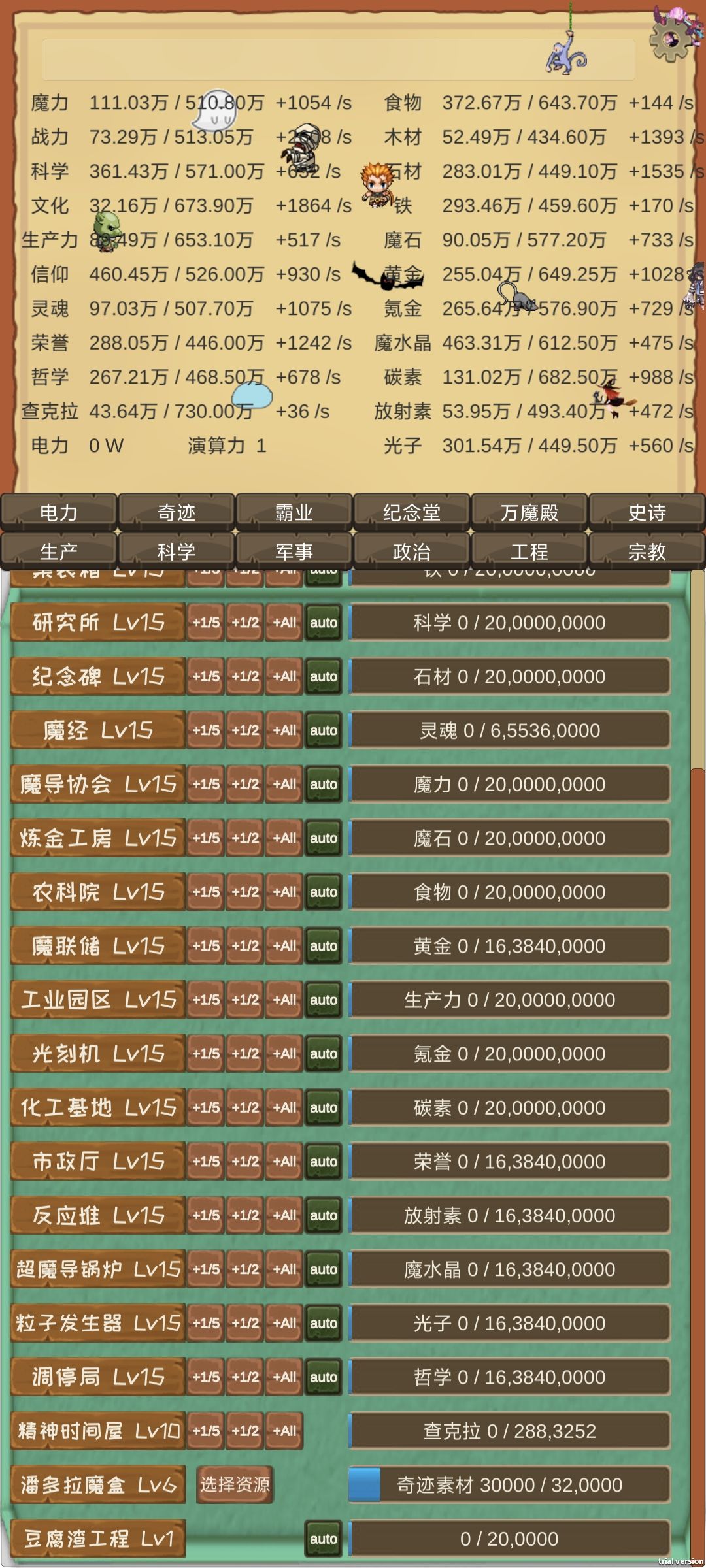 剩下的基本上都是缺演算力。解决方案,魔族议会点数有多少点多少的重视调查,然后工程和霸业齐头并进就行了。