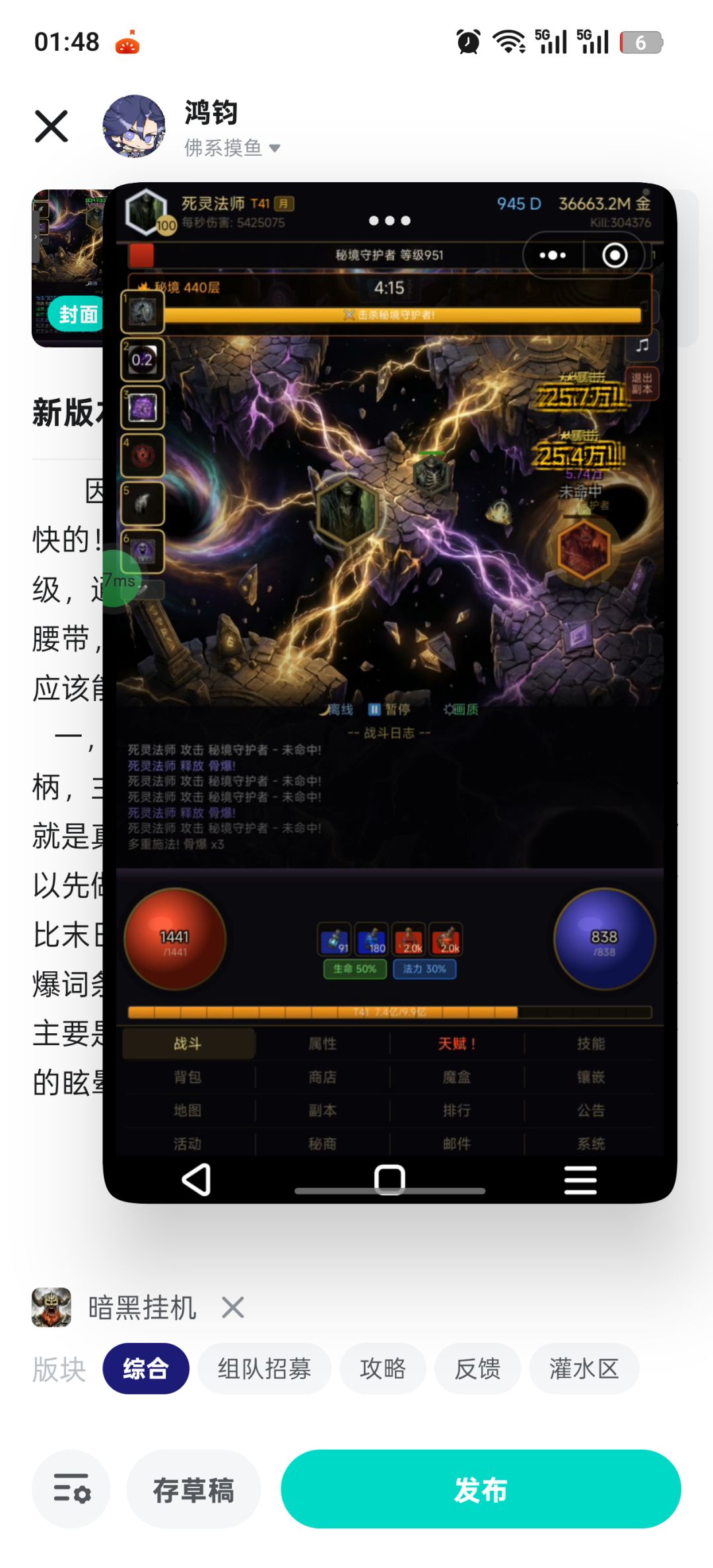 作为一名新玩家(也是一名暗黑系资深玩家)上星期在一次意外中发现了这款好玩的游戏!就被游戏的爽感冲昏了头!无敌压碎,无敌骨爆,无限轰炸!给我一件装备,就能把词条洗到爆炸!但是,好玩是好玩,作为一名新人三天毕业了,大秘境无论多少层就像喝水一样,挂着就过去了!我以为我要离开了!谁知道我们肝比命长的TD佬肝出来了新版本!削除了曾经的百分百伤害,带来了更多的新的传奇词条,腐化词条!游戏突然好玩了起来!