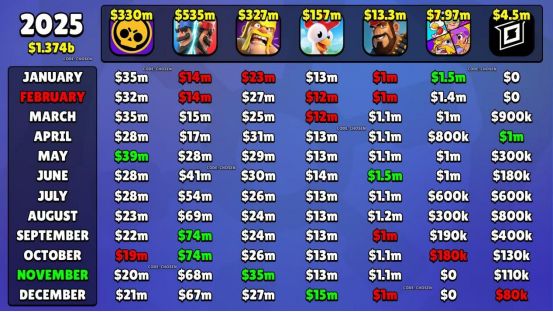 Jynxzi和石头人整活视频将热度推高后官方也顺势推出了新卡牌新活动和各平台直播流量推广,在共同努力下最终新玩家增长了近500%,月流水最高一度冲至7400万美元,但就当所有人认为《皇室战争》要坐稳宝座时,策划团队却跳出来给了自己两刀。