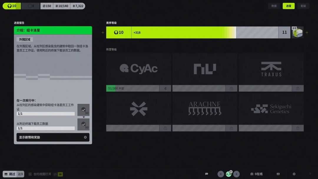 可以说,部门升级的进度,很大程度影响了玩家的装备水平,一个队伍在早期针对性地完成任务,越早完成构筑,实力也就越强,也会更爽。相反,单人体验的独狼玩家,在任务进度上自然慢人一步。