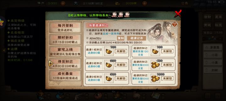 我的邀请码ADW2DJ,烟雨江湖了解一下