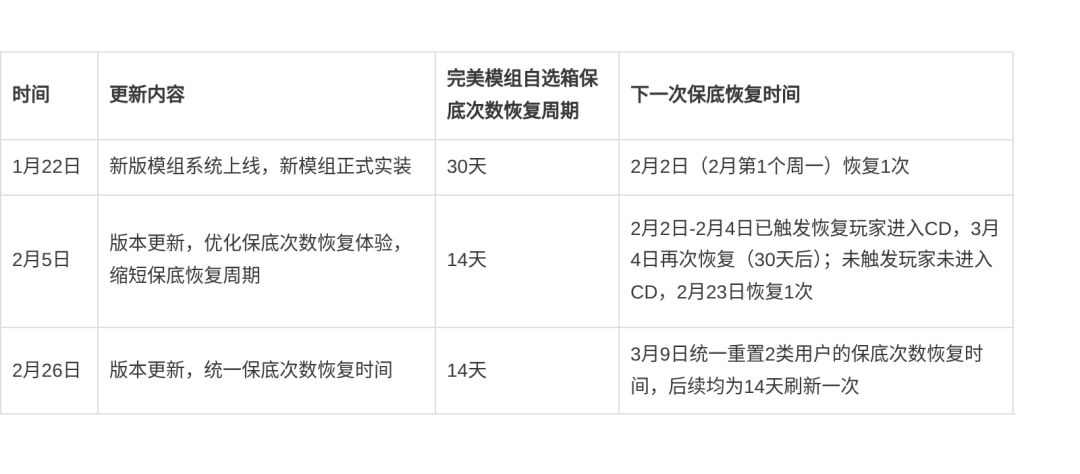 问题说明 | 关于完美模组自选箱保底恢复时间显示差异的说明