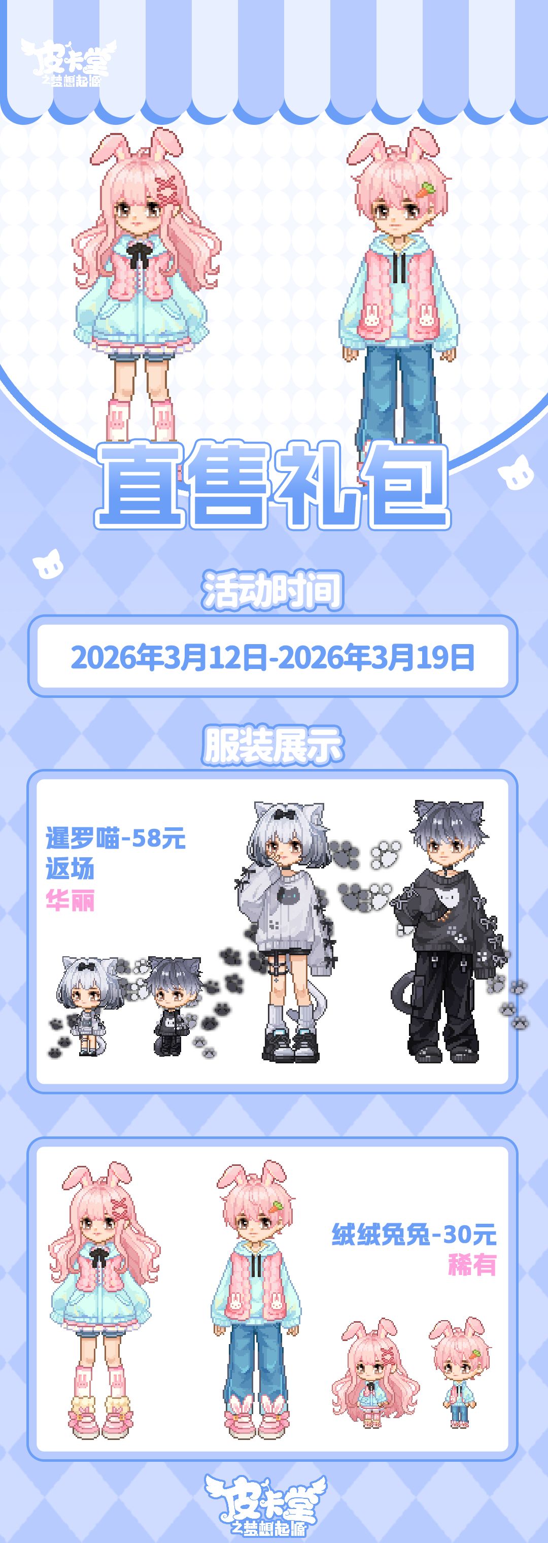 -【直售礼包】全新稀有套装「绒绒兔兔」上线、华丽套装「暹罗喵」返场!