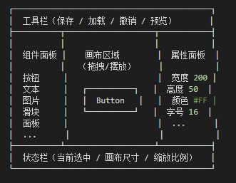 先搞清楚:UI 编辑器长什么样一个最小可用的 UI 编辑器,核心就 4 个区域: