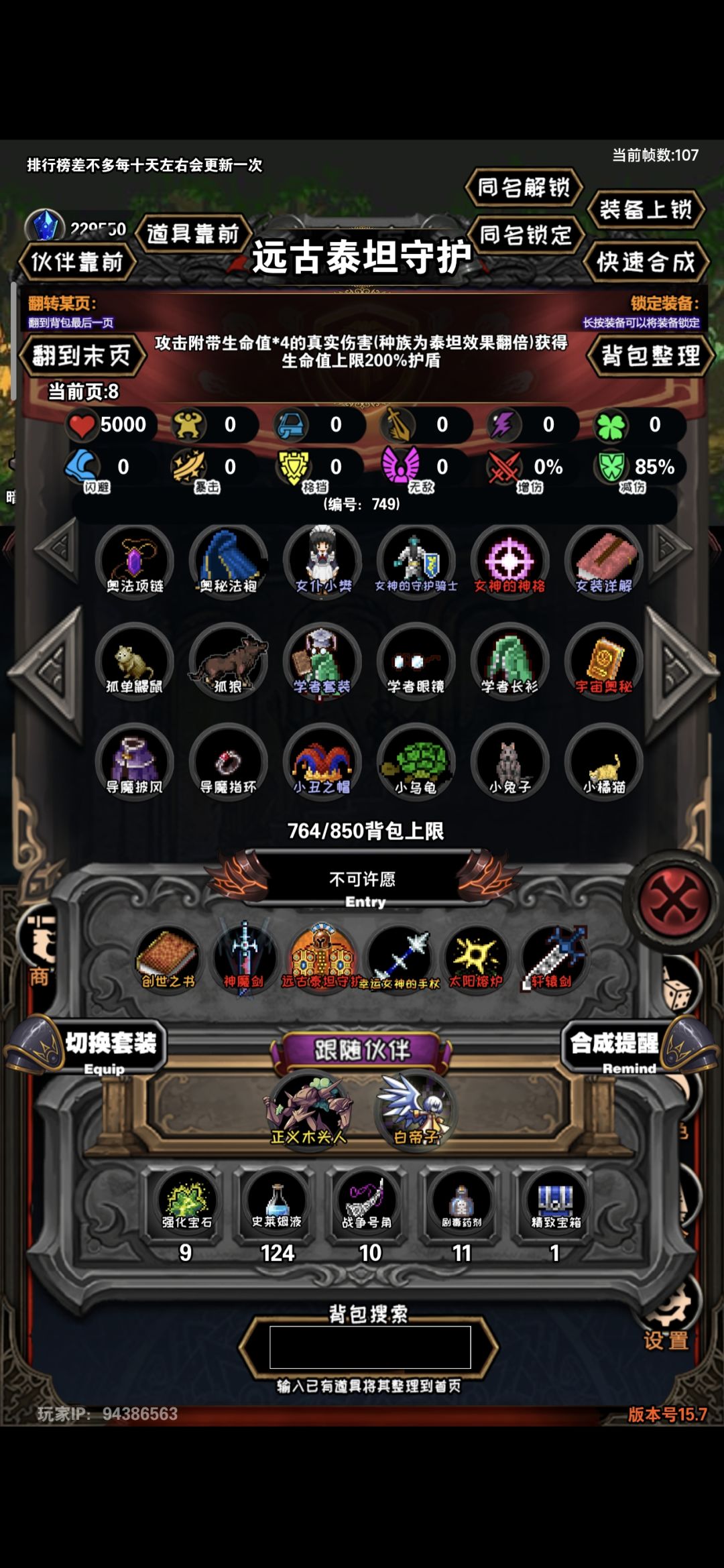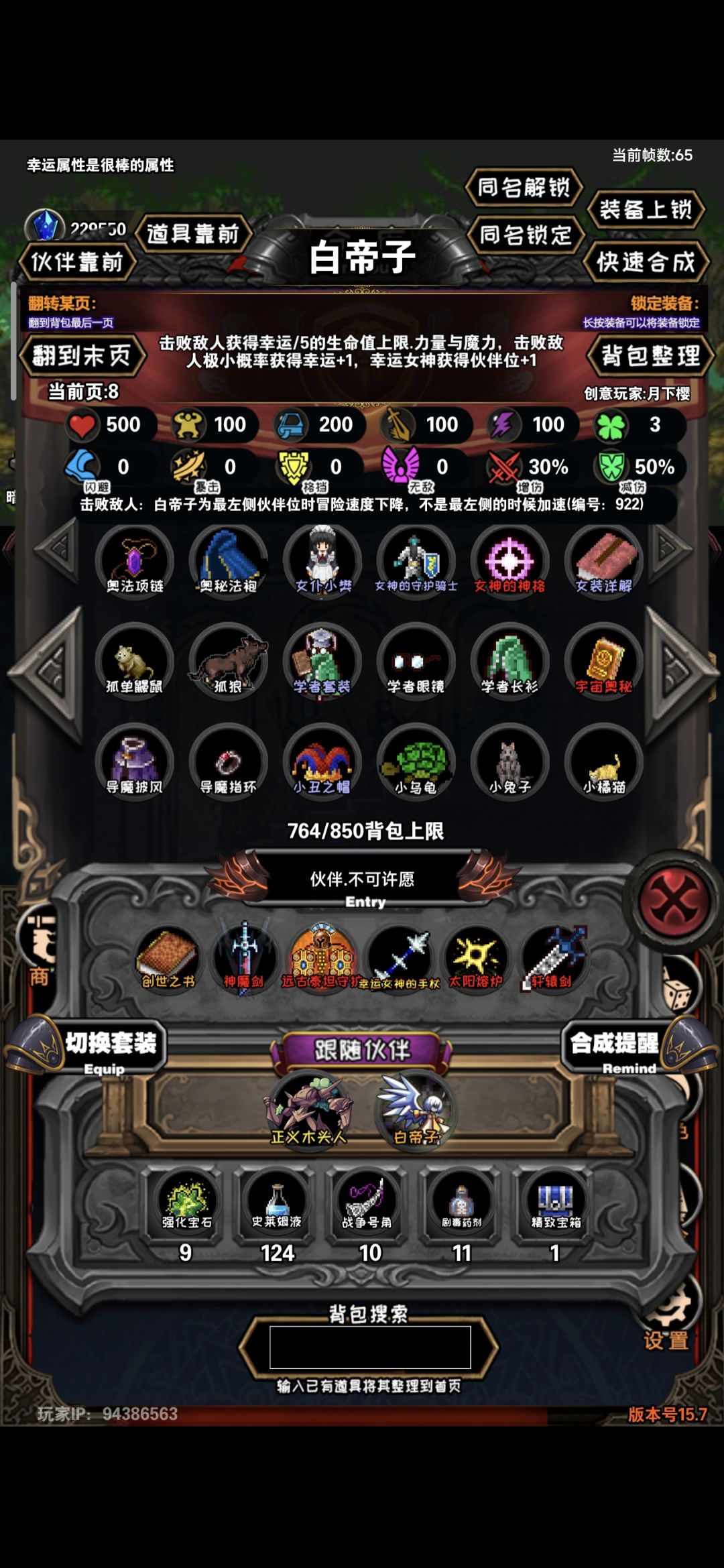 最后就是关联的重中之重的宠物:白帝子(依靠白帝子的宠物特性得到幸运转化的属性加成)