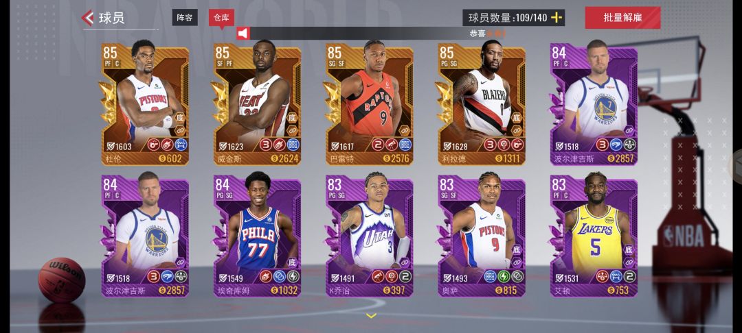 美职篮篮球世界 阵容搭配