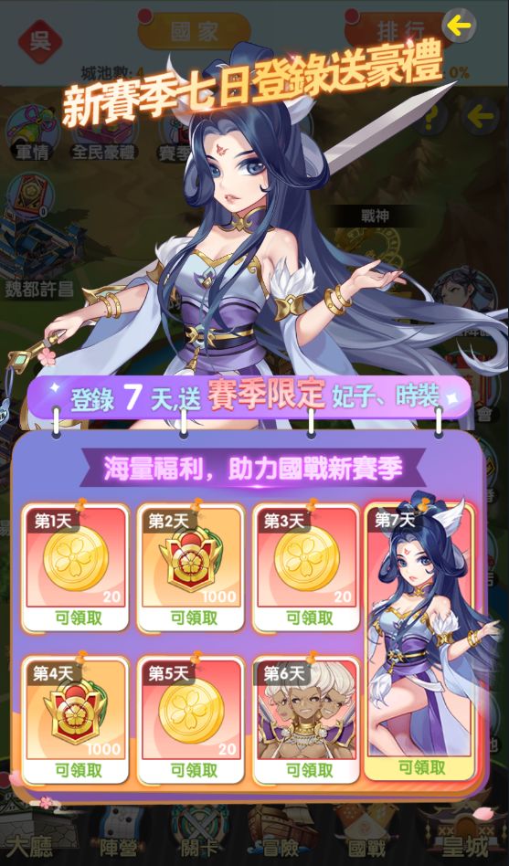 国战新赛季将开启新赛季系列活动,包含新赛季7日登录以及特殊妃子抽取活动等,玩家可以获得赛季限定的新妃子及时装。