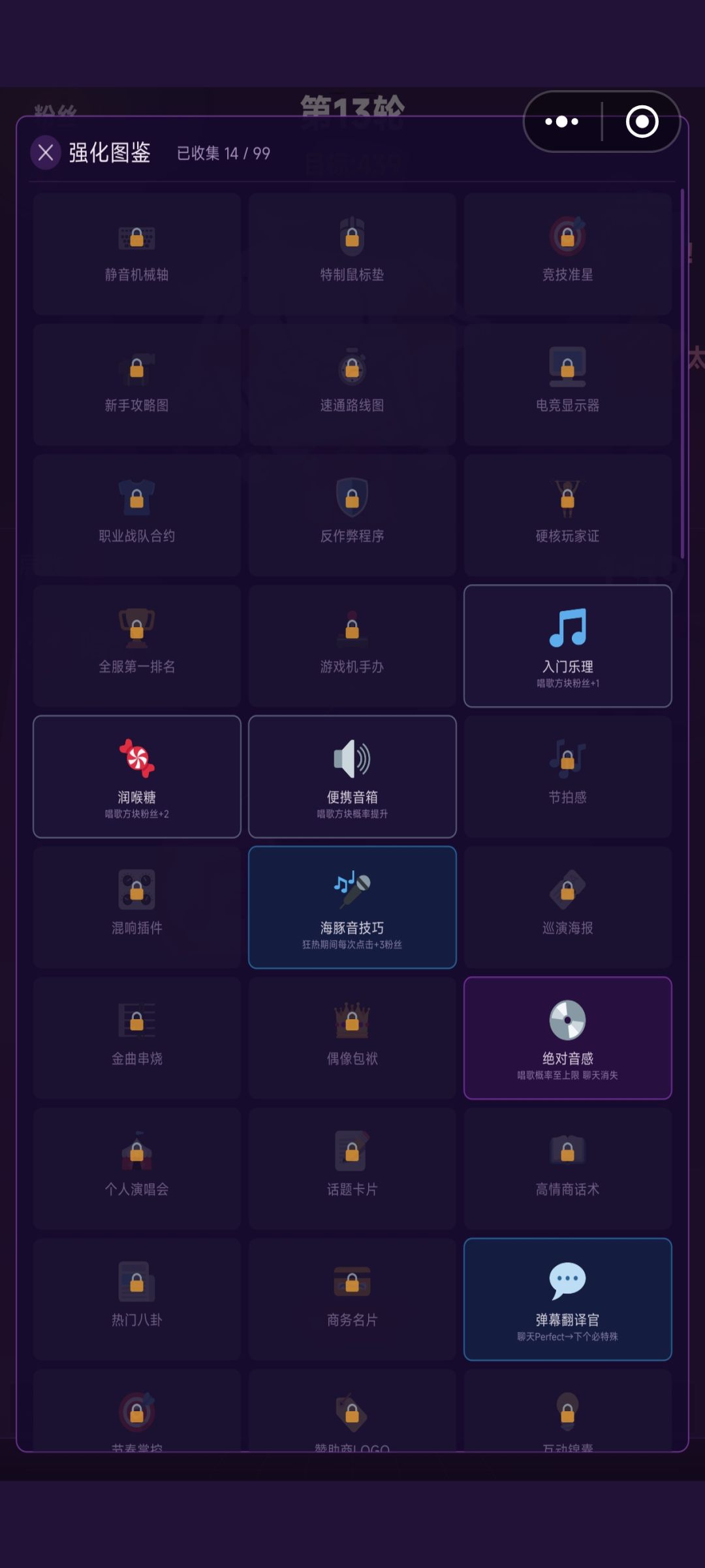 - Roguelike强化系统:每轮结束后提供随机Buff选择(目前图鉴可见99种强化),围绕“游戏方块”“唱歌方块”“聊天互动”三条路线做Build,双主角(魔魔/哆哆)的初始天赋差异进一步丰富了流派选择,重复游玩的策略深度足够。