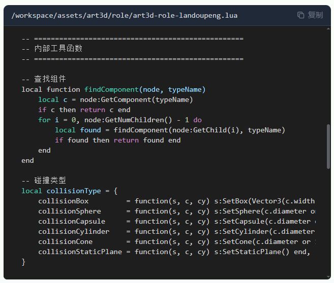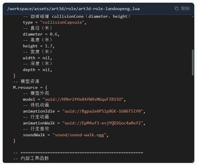 就比如我的这个模型,精确控制高度为1.7米,有待机和行走两个动画,行走时会自带步行音效,在主场景中也可以和其他物品碰撞(参考图二和图三)。