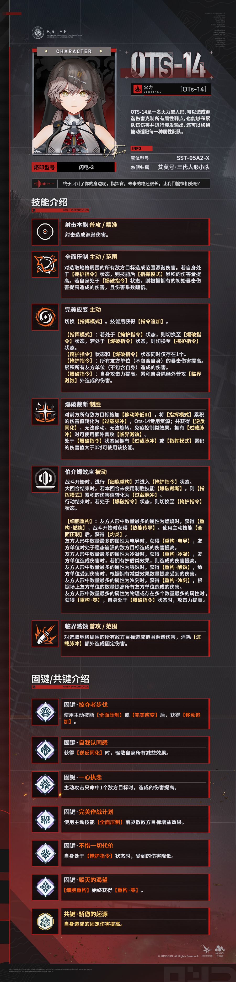 尊敬的指挥官,现在为您带来精英人形「OTs-14」技能相关情报!