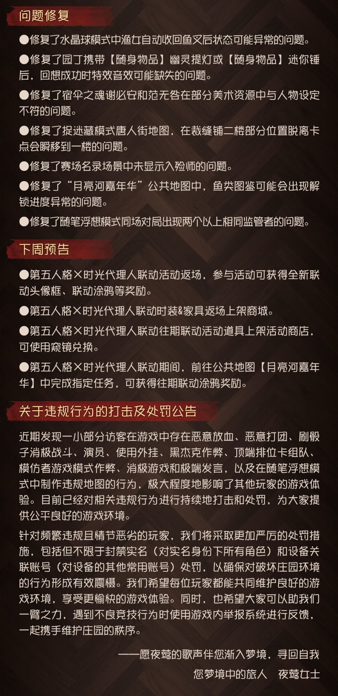 —— 惊喜签到福利活动即将开启,活动期间完成签到即可获得窥镜、线索、奇珍时装体验卡(7天)等奖励;